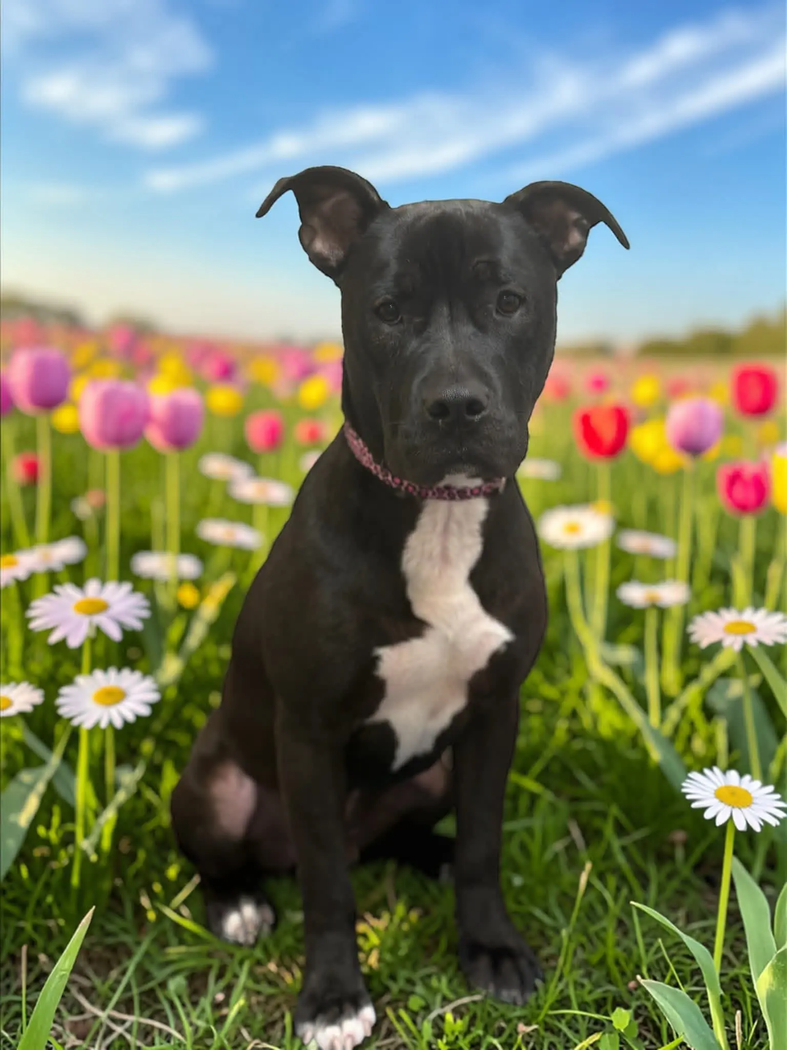 Photos and text about the pet's story, in any grid or layout you think looks good. In terms of formatting, try to switch it up visually, story to story.